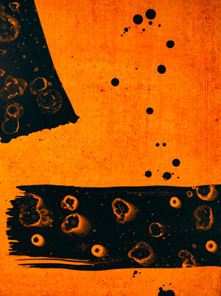 The void is never neutral. The backgrounds, shaped by layers of washes, pigments, and textures, vibrate with silent energy. They evoke interstellar space, an invisible matrix that pulses and breathes, awaiting the irruption of the gesture.